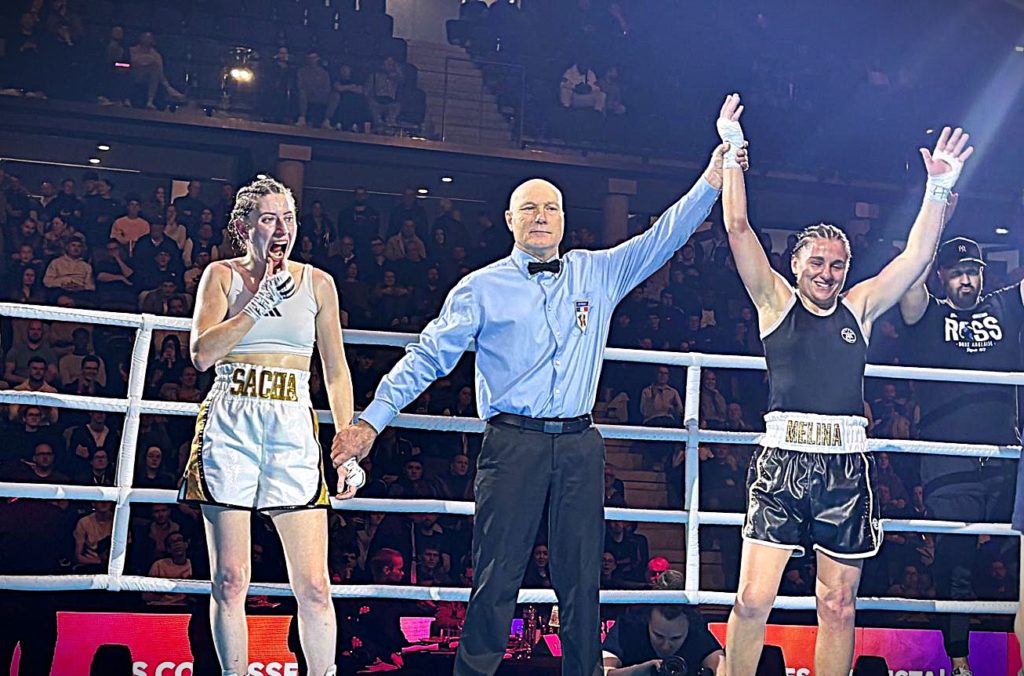 Sacha Morice touchait avec sa droite et se mettait hors de portée, son direct du bras avant était efficace et la challenger ne parvenait pas à la cadrer. La championne imprimait le rythme, son travail basé sur la mobilité et la boxe en ligne lui permettaient de dominer les premiers rounds. Melina Ainaoui redoublait d’efforts, elle accentuait son pressing au fil des reprises pour placer ses crochets des deux mains. Passé la mi-combat, elle touchait régulièrement à la face, son activité de tous les instants et son débit de coups gênaient Sacha Morice. La droite de la championne connectait sans pour autant freiner l’ardeur de son adversaire qui maintenant imposait le travail de près qu’elle affectionne. Le duel demeurait indécis entre une boxeuse utilisant les contre-attaques et une autre qui ne lui laissait aucun moment de répit. Melina Ainaoui se montrait à son avantage lors des deux derniers rounds, elle finissait en trombe en touchant nettement Sacha Morice.