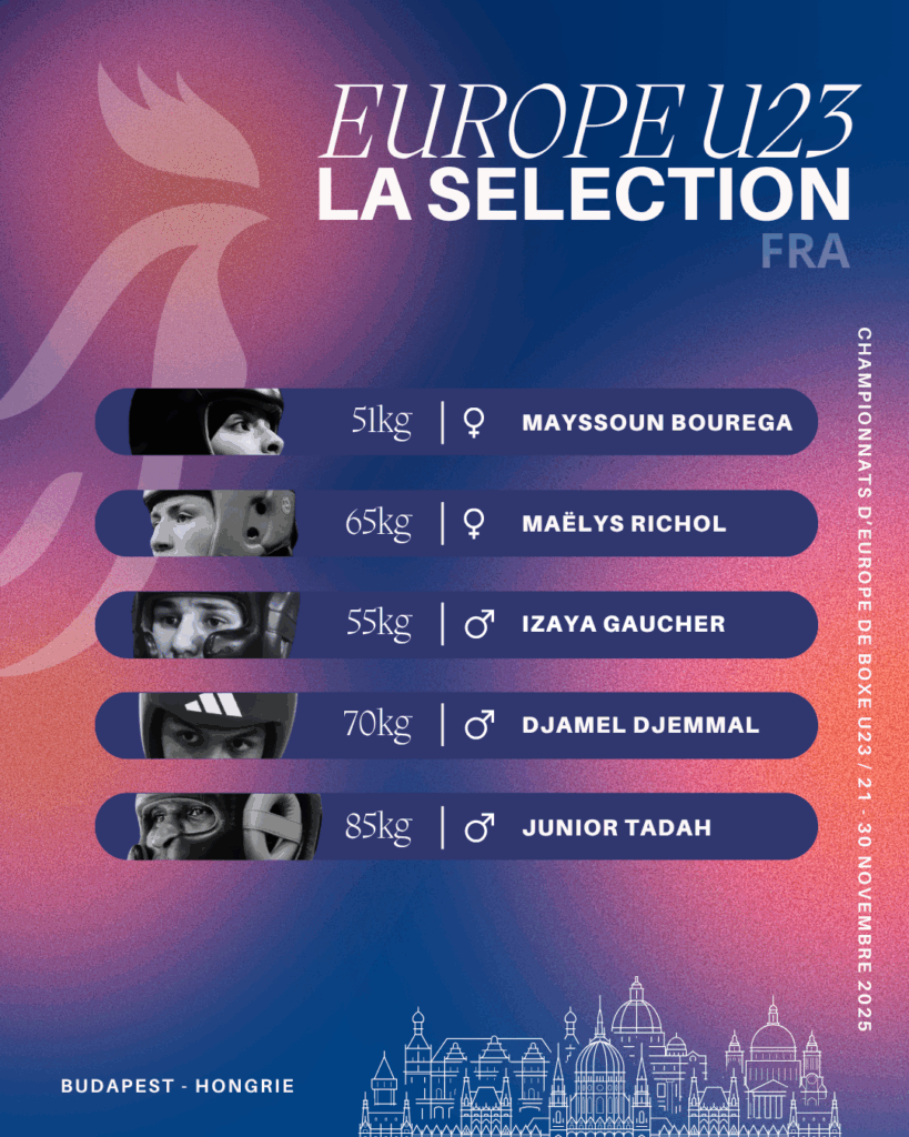 Du 21 au 30 novembre 2025, 5 athlètes français participent aux Championnats d'Europe U23 qui se déroulent à Budapest, en Hongrie.