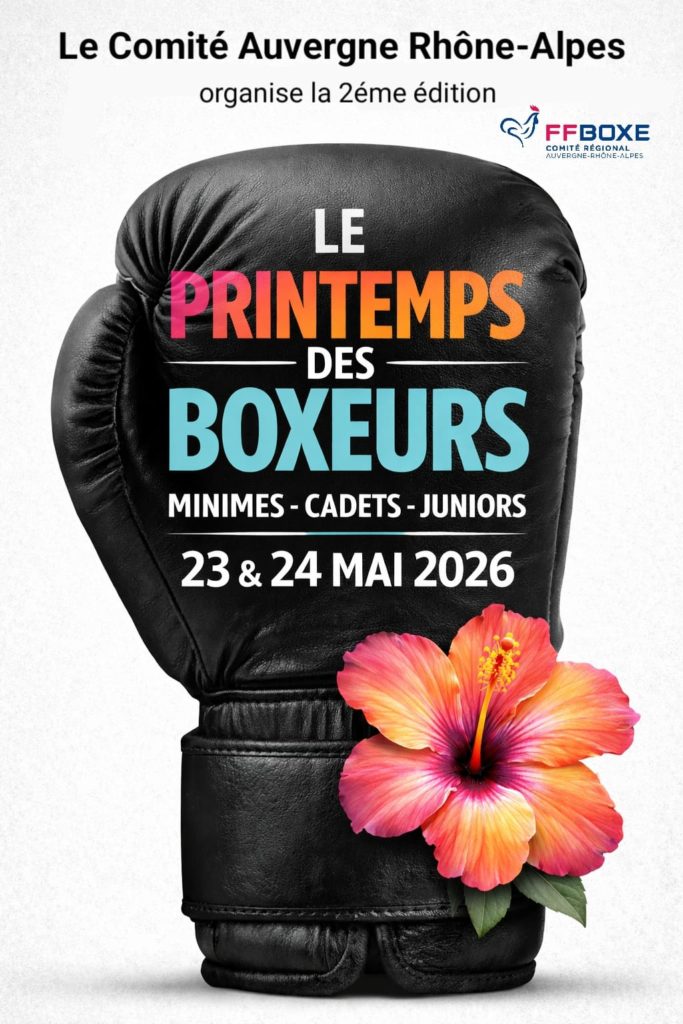 La commission de boxe amateur Auvergne Rhône-Alpes a le plaisir de vous annoncer la deuxième édition du printemps des boxeurs qui aura lieu les 23 et 24 mai 2026.