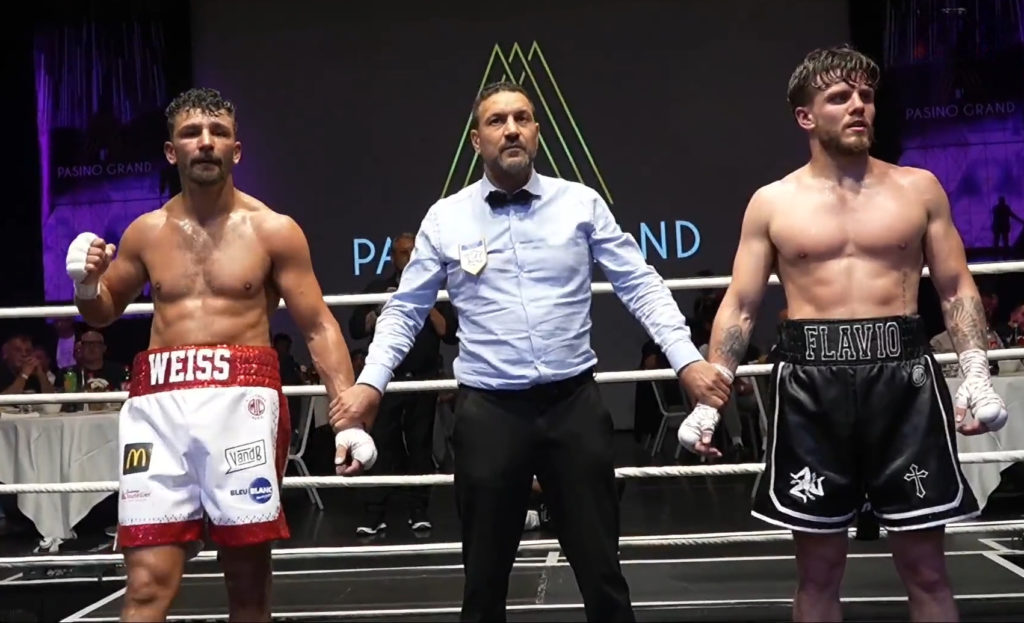 En welters, Jordy Weiss (35 v, 1 d, 1 n) a battu aux points (60-54, 60-54, 59-55) Flavio Marca (4 v, 5 d, 2 n).